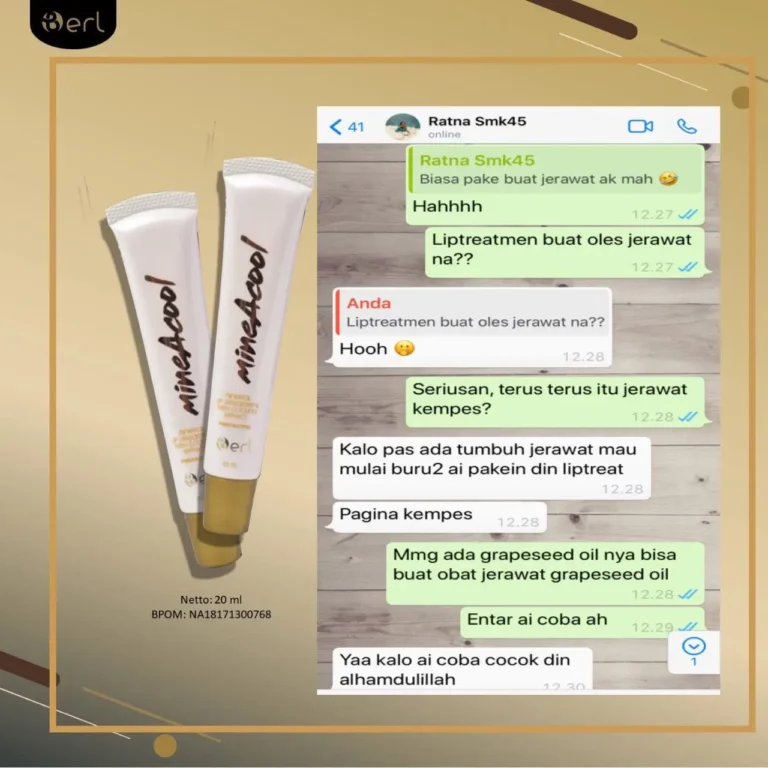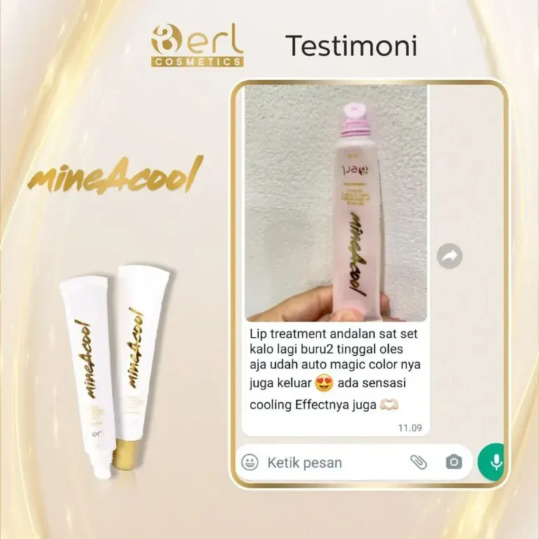 B Erl Beauty Advance MineAcool Lip Treatment adalah perawatan bibir dalam bentuk balm yang dirancang untuk membantu merawat bibir kering, pecah-pecah, dan tampak gelap akibat paparan sinar UV, kebiasaan minum kopi, gaya hidup, maupun pemakaian lipstik yang kurang tepat. Saat diaplikasikan, lip treatment memberikan kelembapan yang terasa nyaman, membantu menutrisi permukaan bibir, dan menghadirkan cooling sensation yang menyegarkan.