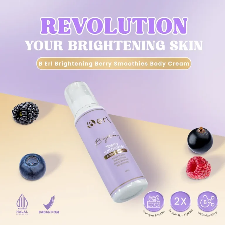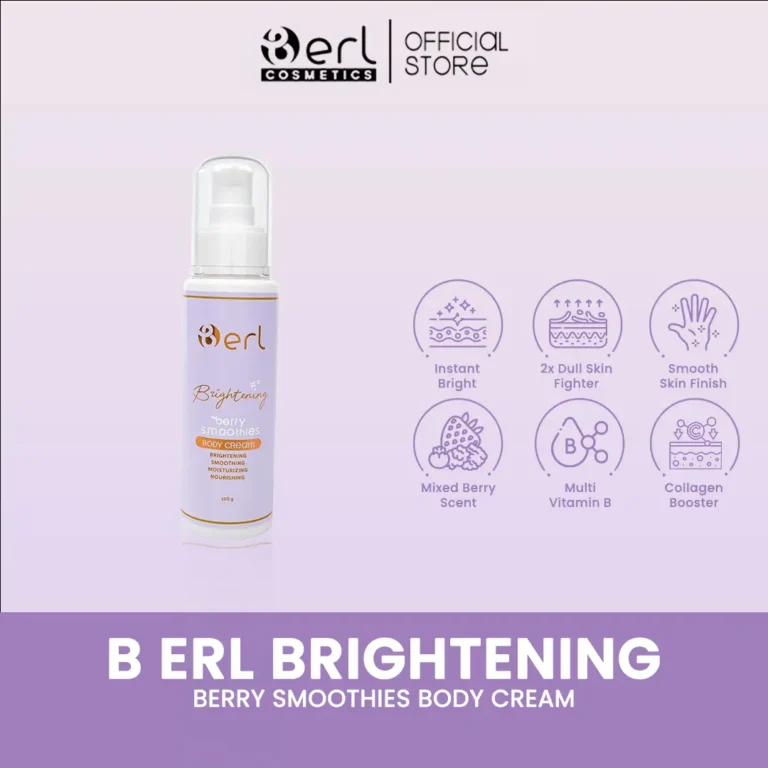 B Erl Brightening Berry Smoothies Body Cream adalah body cream dengan sensasi tekstur lembut seperti smoothies yang mudah meleleh saat diratakan, sehingga nyaman dipakai sehari-hari tanpa terasa berat. Formulanya dirancang untuk membantu tampilan kulit tubuh terlihat lebih cerah, lebih merata, dan terasa lebih halus, terutama pada kulit yang tampak kusam, belang, atau mudah kering.