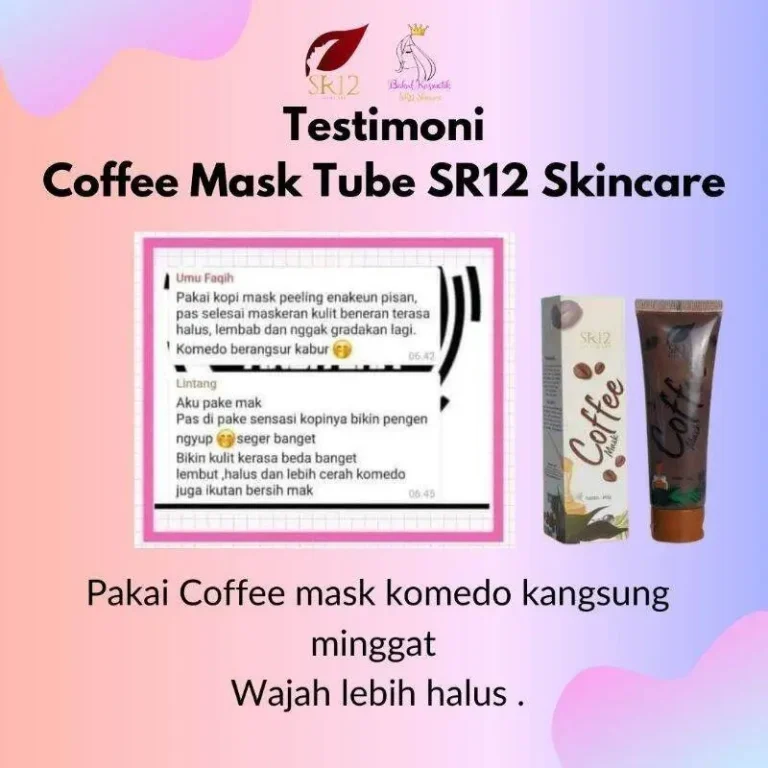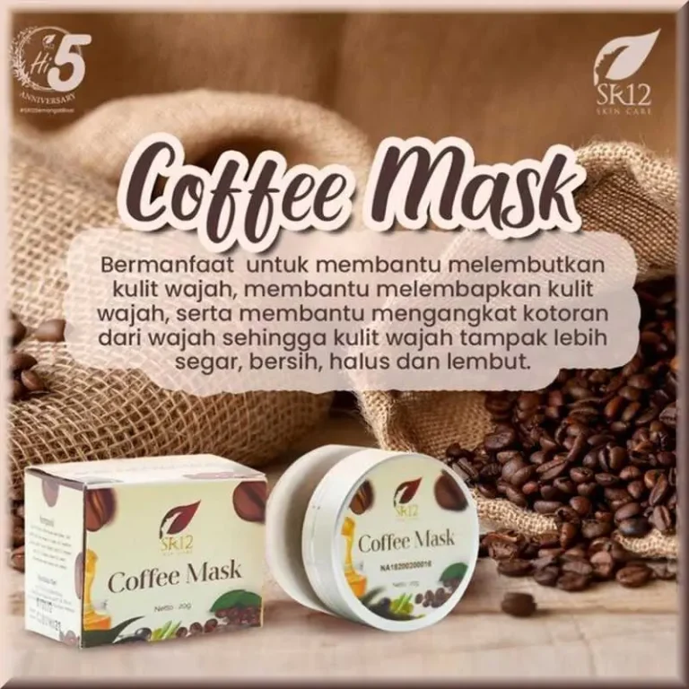 Coffee Mask SR12 adalah masker wajah berbasis kopi dari SR12 Herbal Skincare yang dirancang khusus untuk membantu perawatan kulit wajah secara alami. Produk ini diformulasikan dengan bahan-bahan herbal seperti bubuk kopi robusta, ekstrak madu alami, dan minyak zaitun yang berfungsi sebagai antioksidan dan pelembap kulit. Masker ini bekerja dengan cara mengangkat sel kulit mati, mengangkat kotoran dan minyak berlebih, serta membantu regenerasi kulit sehingga wajah tampak lebih bersih, segar, dan cerah. Paduan kopi robusta sebagai exfoliant alami dan madu yang menutrisi kulit menghadirkan perawatan wajah yang efektif tanpa bahan-bahan keras. Produk telah terdaftar di Badan Pengawas Obat dan Makanan Indonesia (BPOM) untuk keamanan penggunaannya.