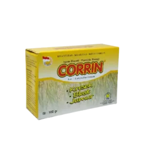 CORRIN WP adalah pestisida biologi/agens hayati berbentuk WP (wettable powder/serbuk yang dapat disuspensikan) yang diformulasikan untuk pengendalian penyakit utama pada tanaman padi, terutama penyakit blast yang disebabkan oleh Pyricularia oryzae. Produk ini bekerja melalui peran bakteri antagonis yang berkompetisi dan menghambat perkembangan patogen pada permukaan/area target aplikasi sehingga tanaman lebih terlindungi sejak fase awal (perlakuan benih) hingga fase pertumbuhan (aplikasi semprot di pertanaman). CORRIN WP cocok dipakai sebagai bagian dari program budidaya padi yang mengutamakan pendekatan hayati, membantu pengelolaan penyakit secara lebih ramah lingkungan dibanding pendekatan kimia murni, serta dapat dipadukan dengan praktik budidaya baik (sanitasi lahan, pengaturan jarak tanam, pemupukan berimbang) untuk hasil yang lebih stabil.