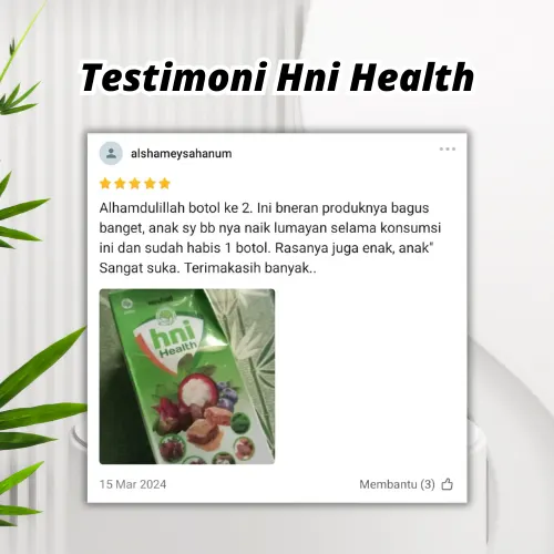 HNI Health adalah minuman kesehatan dengan formulasi berbasis bahan alami untuk memelihara kesehatan tubuh. Komposisinya menggabungkan sumber energi alami dari sari kurma dan madu, dilengkapi royal jelly serta bee pollen, lalu diperkaya aneka bahan nabati yang dikenal kaya fitonutrien dan antioksidan.