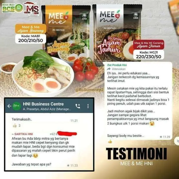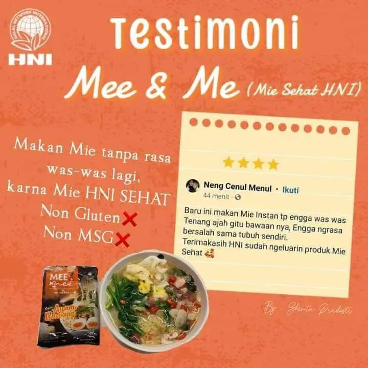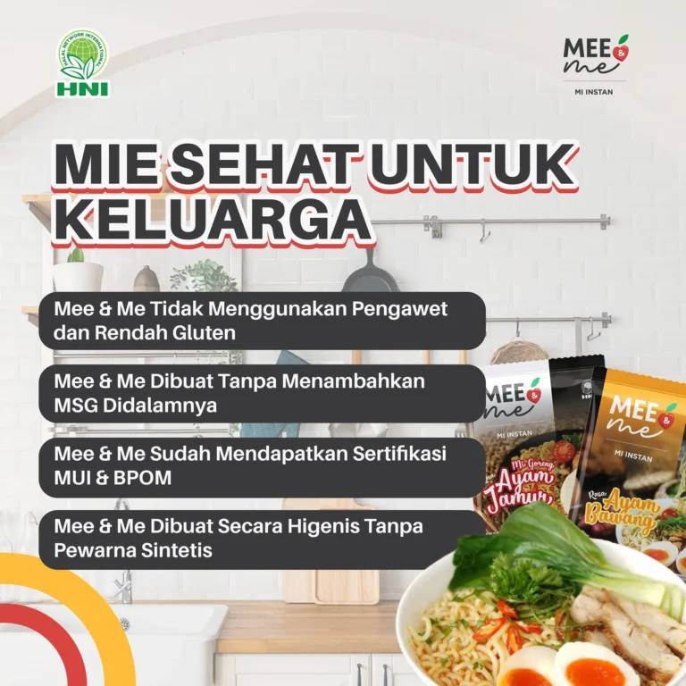 MEE & ME Ayam Bawang adalah mi instan kuah rasa ayam bawang dari HNI (Halal Network International). Rasa gurih ayam berpadu dengan aroma bawang yang khas, cocok untuk menu cepat saji di rumah, kantor, atau saat perjalanan. Produk ini dirancang praktis: cukup direbus sekitar 3 menit, lalu campurkan mi dan kuahnya dengan bumbu di mangkuk hingga merata.