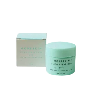MORESKIN Clean & Glow Lite Cream adalah krim booster untuk perawatan wajah yang ditujukan membantu proses peremajaan kulit, sehingga tampilan kulit terlihat lebih cerah dan terasa lebih kencang. Formula “lite” dirancang untuk pemakaian yang nyaman sebagai tahap pengunci (finishing) setelah rangkaian skincare, dengan kombinasi humektan dan emolien untuk membantu menjaga kelembapan, serta bahan pencerah dan antioksidan yang mendukung tampilan kulit lebih segar.