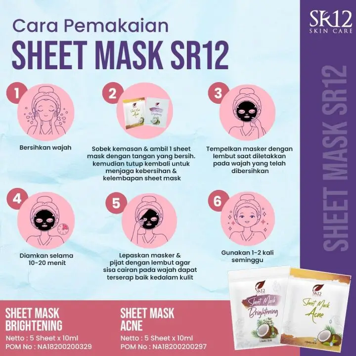 Penggunaan sheet mask umumnya dilakukan setelah proses pembersihan wajah, sebagai perawatan tambahan untuk menjaga kondisi kulit tetap terawat. SR12 Sheet Mask Acne diposisikan sebagai produk praktis yang dapat digunakan secara berkala dalam rutinitas perawatan kulit, terutama bagi pengguna yang menginginkan perawatan wajah tanpa langkah yang rumit.